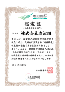 今年も引き続き、経済産業省と日本健康会議が進める健康経営優良法人認定制度において、