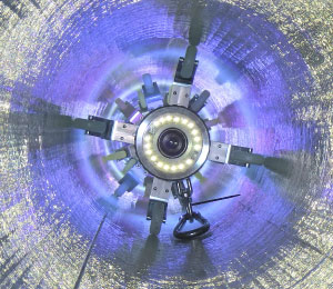 当社は、更生工事の形成工法の一つ、光で硬化させるJ-TEX工法を採用。